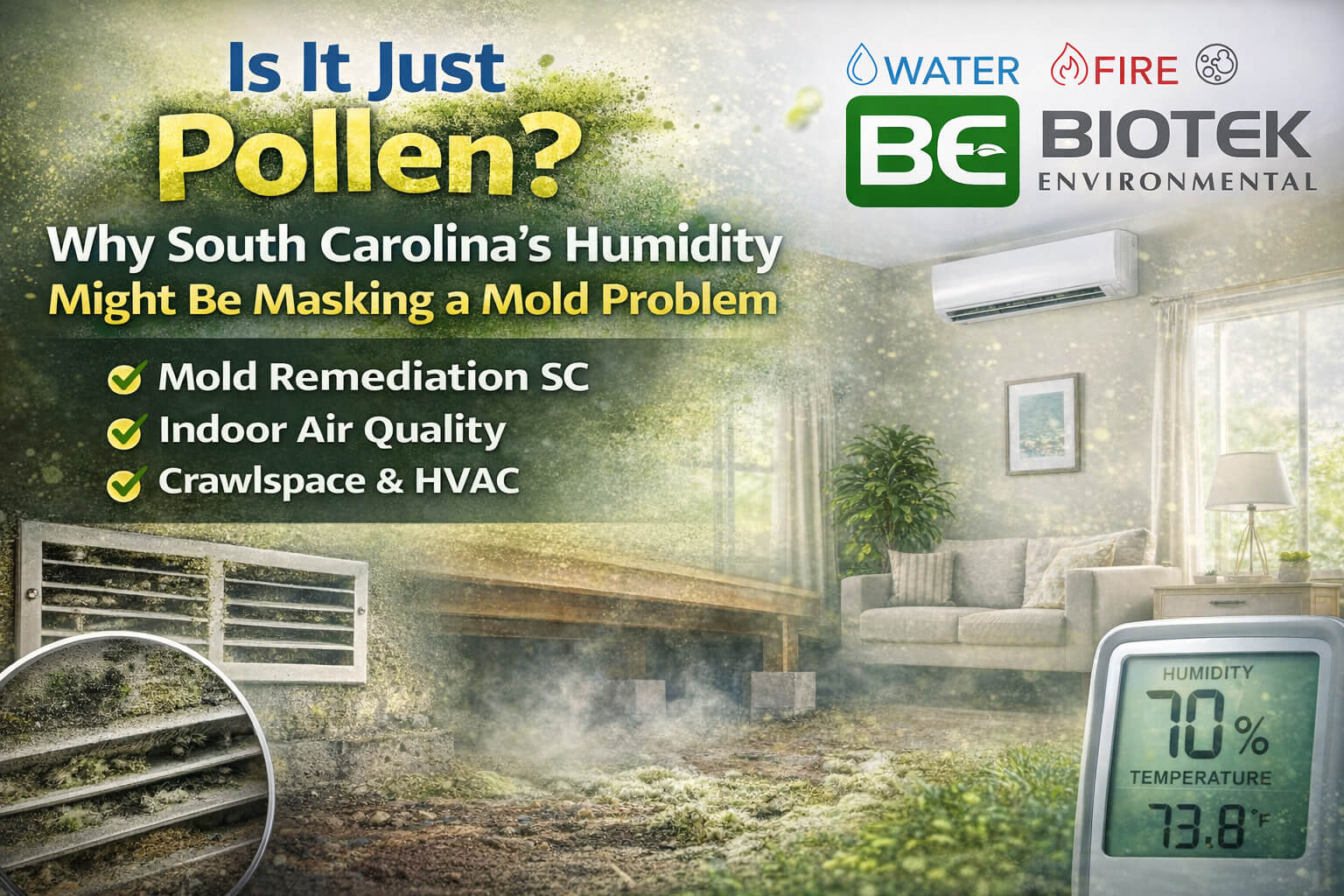 At BioTek Environmental Inc., we’ve spent nearly two decades investigating the air quality inside Southern homes. What we find, time and again, is that for a significant number of allergy sufferers, pollen is only part of the problem. The deeper, more persistent culprit is quietly growing in your crawlspace, your HVAC ducts, and behind your baseboards and it’s called mold.